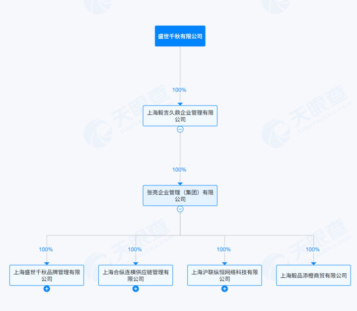 天眼查相关信息显示,上海毅言久鼎企业管理有限公司成立于2025年,注册资本100万人民币,法定代表人和最终受益人为张亮。注册于中国香港的盛世千秋有限公司是其控股股东,持股比例100%,该公司成立于2024年。